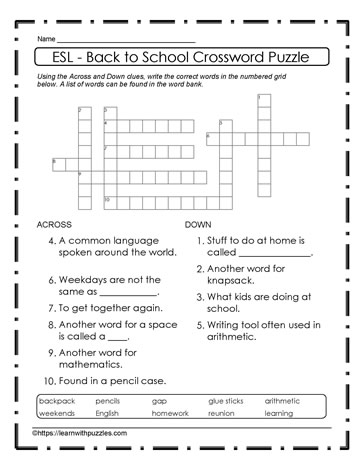 Esl Back To School Puzzle 25 Learn With Puzzles